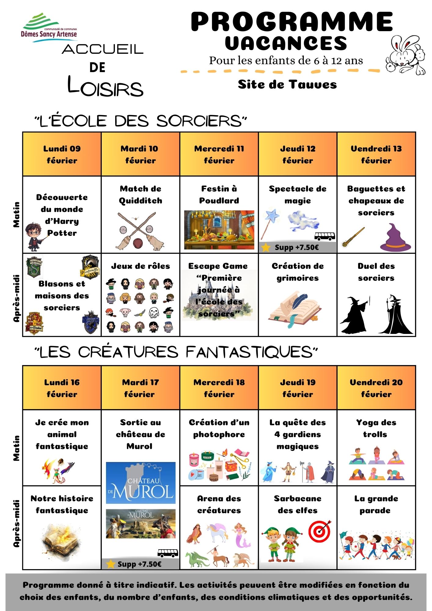 Centre de loisirs : Vacances du 09/02 au 20/02